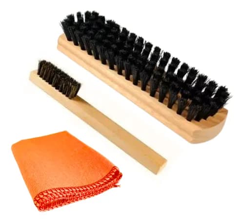 Kit Engraxar Sapato Couro 2 Escovas + 1 Flanela Polir Brilho - R$ 39,99