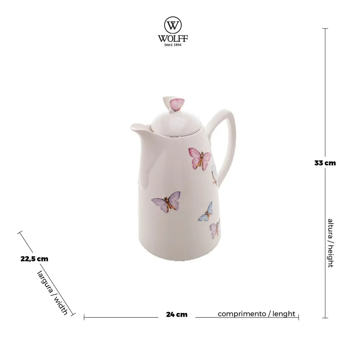 Garrafa Térmica Wolff Borboletas De Porcelana Branco - R$ 410