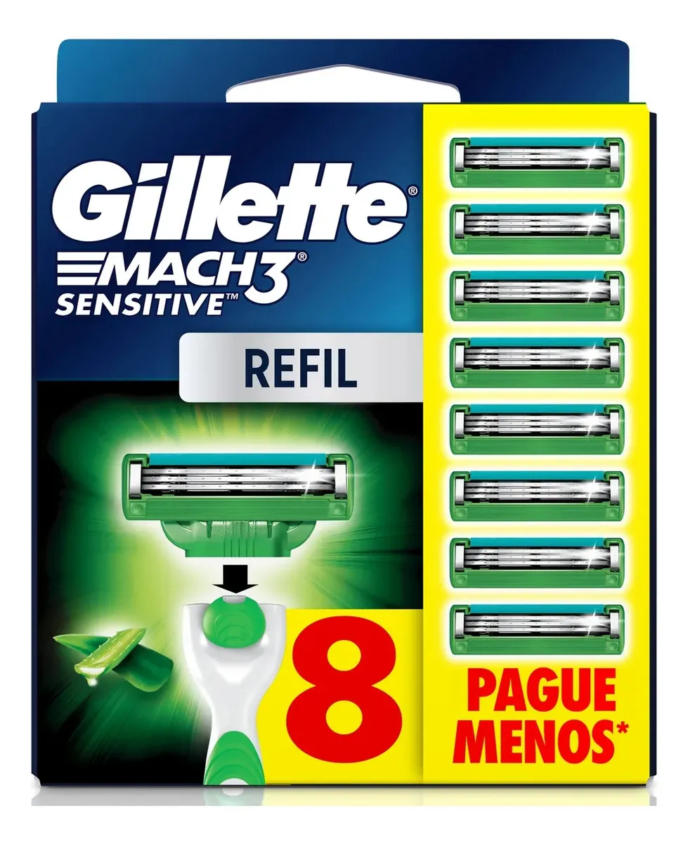Gillette Mach3 Sensitive Carga para Aparelho de Barbear com Aloe 8 Unidades - R$ 60