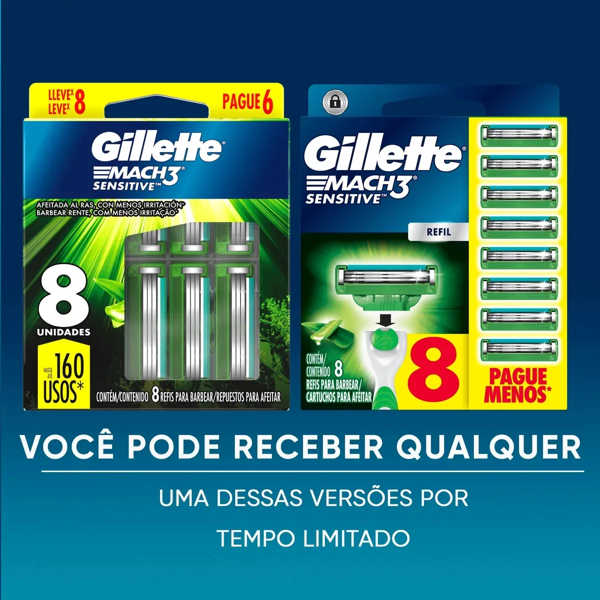 O Mach3 é o clássico que não decepciona. Nessa versão Sensitive, o foco é o conforto. Com o desconto atual, o preço por carga está imbatível, sendo um dos melhores momentos para repor o estoque. É uma compra racional e segura para o dia a dia.