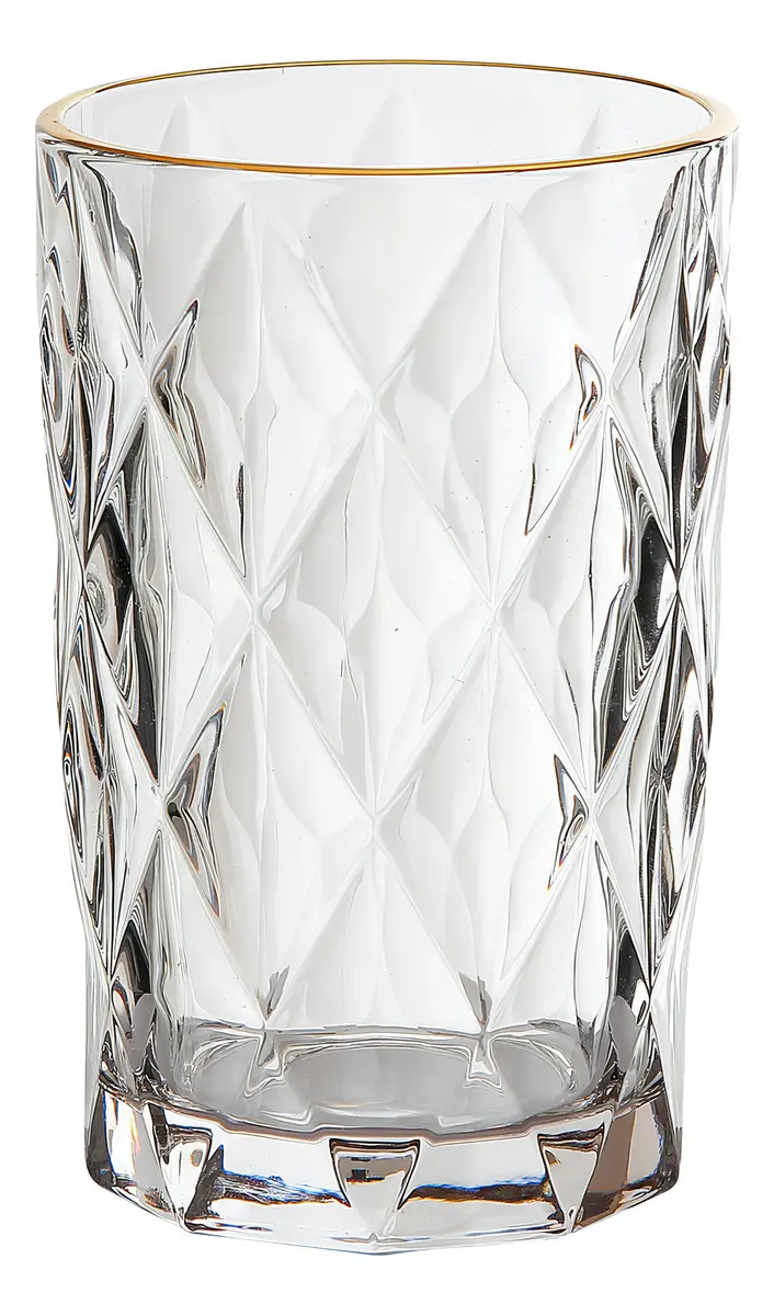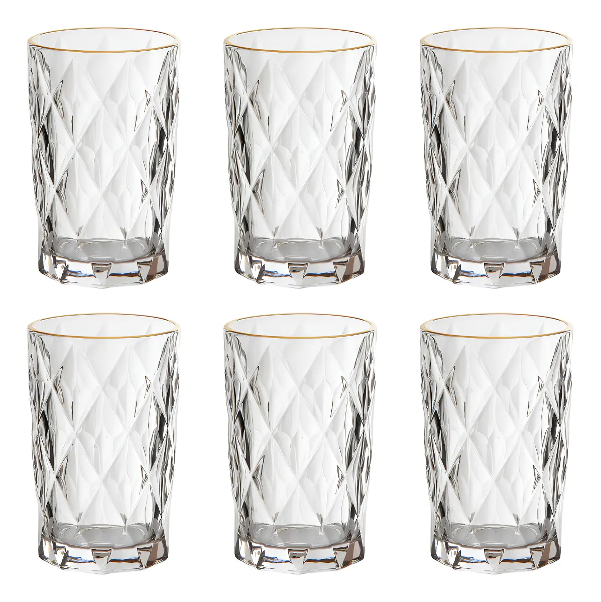 Jogo 6 Copos Altos Vidro 350ml Diamond Clear Borda Dourada Ke Home - R$ 65,99