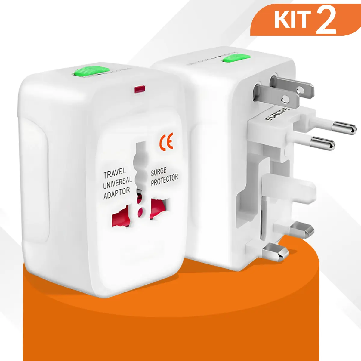 Kit 2 Adaptadores Tomada Universal Para Viagem Internacional Compatível Em +150 Países Parosflux - R$ 26,89