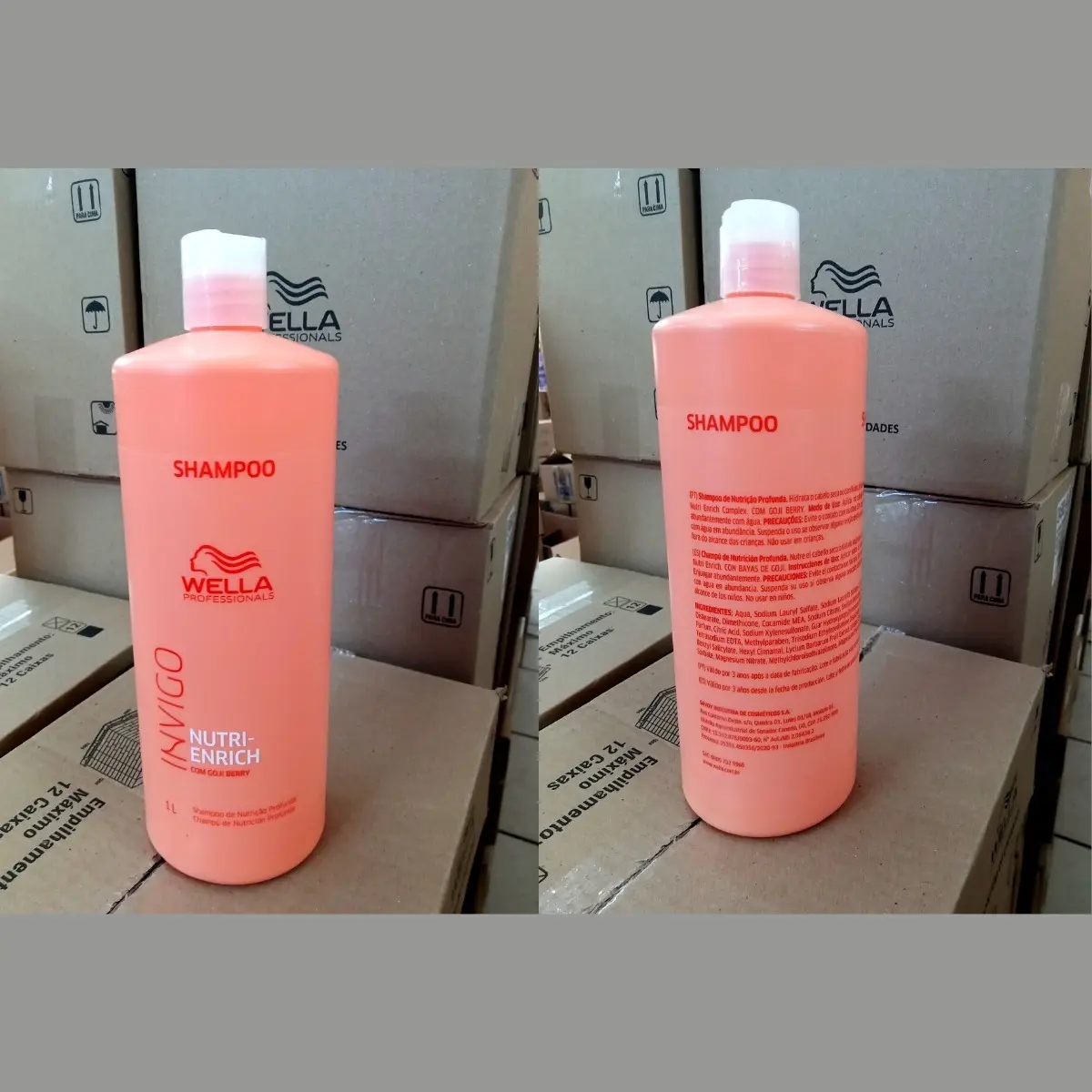 Este kit é o 'santo graal' do custo-benefício para quem usa Wella. A linha Nutri-Enrich é espetacular para cabelos ressecados ou com química. Pelo preço de R$ 262, cada frasco de 1L sai por um valor imbatível, sendo muito mais vantajoso que as versões menores de 250ml.